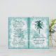 The design features a tropical teal green palm tree on a turquoise and white textured effect background with color coordinated editable wording.