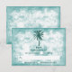 The design features a tropical teal green palm tree on a turquoise and white textured effect background with color coordinated editable wording.