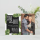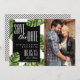 This tropical palm tree wedding save the date card is perfect for a beach wedding. Featuring vintage, botanical palm leaves drawings and art deco inspired fonts, this beach wedding save the date can be customized online with your details and photo. It has a black and white striped backer, a modern, chic wedding save the date card.