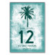 The design features a tropical teal green palm tree on a turquoise and white textured effect background with color coordinated editable wording.