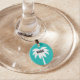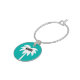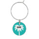 Cute tropical palm tree custom wine glass charms. Round metal wine glass ring tag labels for hot summer destination wedding, Birthday, celebration, bachelorette, bridal shower, family reunion, business, office event, etc. Fun party favor accessories for quests, wine lovers, friends, family etc. Add you own name, monogram or initials to mark drink glasses. Glamorous design with turquoise blue or custom color background. Create exotic charms for mother of the bride, bridesmaids, bride, maid of honor etc.
