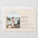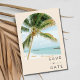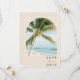 Tropical palm tree save the date for your destination wedding in Key West, Florida or any other beach location. The backside of the save the date features an arch photo and is customized with your wedding details.