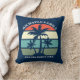 Tropical Palm Tree Navy Blue Sunset Beach House Throw Pillow