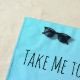 Enjoy this fun tropical beach towel design with the words "Take Me to the Beach" featuring a black palm tree silhouette with coconuts over a blue and purple sky. Personalize it with your name and phrase.