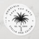 Black and white tropical palm tree wedding save the date flat card. For more advanced customization of this design, please click the "customize further" link.