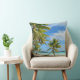 Throw pillow with a hanging palm tree on a white sand beach of a tropical island in the Pacific Ocean belonging to the Tahiti archipelago French Polynesia.