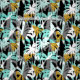 Tropical palm trees modern seamless pattern. White, turquoise gold and black colors.