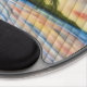 The plastic backing is nice and sturdy. The grippy pads underneath keep the mouse pad where I put it on my table. The pad the mouse sits on is cut well to fit the backing. The wrist pad is perfectly soft, supportive, and thick. I'm left-handed, and this mouse pad works just as well for me as it does for my right-handed friends. I'm the designer of HippieClecticHope products. I'm blown away by how well my intricate fractals turn out on the tangible items in the Zazzle Marketplace. This particular mouse pad ***appears*** like a 3D object... A mathematically-engineered rainbow black opal, inlaid under transparent fabric...