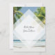 This design features tropical palm trees on a beach. The beautiful greenery of the palms contrast against the blue sky and water. The opaque white diamond element brings the modern typography to the forefront. A perfect fusion of modern and chic. Palm tree greenery design ideal for a tropical beach destination wedding. Beach wedding invitation design with modern elements. Matching wedding stationery items and other wedding invite formats are also available.