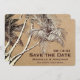 Tropical Palm Tree Beach Wedding Save the Date on Faux Kraft Style Paper Background. - by The Beach Bum