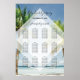 This design features tropical palm trees on a beach. The beautiful greenery of the palms contrast against the blue sky and water. The opaque white diamond element brings the modern typography to the forefront. A perfect fusion of modern and chic. Palm tree greenery design ideal for a tropical beach destination wedding. Beach wedding seating chart design with modern elements. Matching wedding invitations and other stationery items are also available.