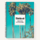 Spiral notebook with a beautiful photograph. Tall palm trees with long skinny trunks in front of a lovely green sky. Retro color scheme. Relaxing and chill.