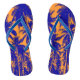 For the beach. Tropical palm trees in a graphic effect. Blue and orange. Palm trees pattern flip flops. Beachwear fashion.
