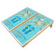 Natural Wood Cornhole Set, Royal Blue and Yellow bags