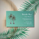 Tropical event planner modern business card, with a palm trees drawing design on a trendy teal green background. With white typography lettering, you customize with your own name or title. A professional way to get the word out about your business.