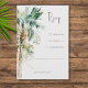 This wedding response card design features a group of beautiful tropical lush green and brown watercolor palm trees on a textured white watercolor paper background. Perfect for a beach or destination wedding. It's part of the Tropical Palm Trees Modern Wedding Suite created by Simply Farmhouse Press.