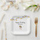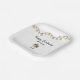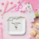 Tropical Beach Birthday party paper plate, with an elegant palm trees string lights design on a white background. With customizable typography lettering, you add your own information. A glamorous addition to your beach inspired dinner table.
