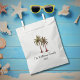 Tropical summer swim party favor bag, with a palm trees illustration design and black customizable lettering. Great for planning your picnic pool party with a beach theme.
