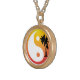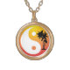 Yin and Yang are two opposites working together in peace, balance and harmony. The Tropical Palm Trees Yin Yang Pendant Necklace makes a unique gift idea for a beach lover girl. This cute and custom tropics themed necklace features a black tropical palm tree ying and yang design on a red, orange and yellow sunset background inside a sterling silver plated round pendant.
