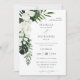 Tropical Palm & White Floral Wedding 2 Invitation