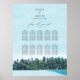 A beautiful watercolor tropical palms and beach wedding design. A unique design featuring palm trees, tropical beach landscape as the background. A modern Summer destination wedding design with palm trees and modern Boho color tones. An elegant wedding seating chart design with modern elements. Matching wedding invitations and other stationery items are also available.