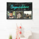 Extra large three photo collage graduation banner for all of the graduates' photos! These professionally designed banners are quickly customizable. You can customize it with the graduate's name, school name, or date. Design features a neon lights "Congratulations" calligraphy script design on a lavish tropical palm leaves background. Our graduation banner adds the perfect touch to your graduation party! Just hang it and your done!
