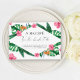 Tropical Palms Watercolor Bridal shower invitation. Design features an watercolor elegant bouquet of classic beach watercolor greenery and flowers, including blush pink hibiscus, orange and blue bird of paradise, green greenery and dark green palm leaf.