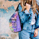 Palm trees in hot pink, purple, and turquoise create an abstract Hawaiian tropical pattern on the front of this sling bag with your name on the side. Create for yourself or give as a gift.