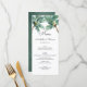 Modern tropical wedding menu features watercolor palm trees with with your names, wedding date and menu options in charcoal gray lettering. Reverse side is a sage blue/green painted background. Perfect for tropical destination, beach, seaside, Hawaiian island and summer themed weddings. Original artwork KL Stock