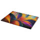 Beautiful glass cutting board features bold and bright tropical floral and beach sunset | AI created surreal fantasy digital art.