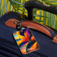 Beautiful luggage tag features bold and bright tropical floral and beach sunset | AI created surreal fantasy digital art. Personalize with name or monogram