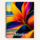 Colorful bullet journal features bold and bright tropical floral and beach sunset | AI created surreal fantasy digital art. Personalize with name or monogram
