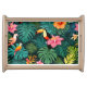 A vibrant seamless pattern featuring exotic parrots, toucans, lush tropical leaves, and colorful hibiscus blooms. Perfect for adding a bold, jungle-inspired touch to home décor, apparel, and accessories.