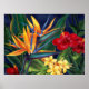 This original digital painting by renowned illustrator Jeff Fillbach is an explosion of the colors of some of nature's most beautiful flowers. Featuring an array of birds of paradise, plumeria and hibiscus, the items in our Tropical Paradise collection will lift your spirits, and fuel your dreams. Bring paradise to your home or office today.