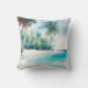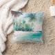 Tropical Paradise with Sandy Beach and Palm Trees Throw Pillow