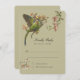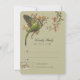 This RSVP card for a wedding is a true artistic treasure, capturing the essence of a tropical paradise. It features an exquisite pair of parrots, their feathers a vibrant blend of jade green, cobalt blue, and sun-kissed gold, nestled among a spray of orchids. These delicate blooms are illustrated in shades of peach, blush, and ivory, adding a touch of romantic elegance. The card's background is a warm olive hue, perfectly complementing the rich colors of the avian subjects. On the flip side, the card invites a response from guests, presented with classic elegance against the same olive backdrop, accented with additional floral illustrations.