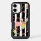 Watch out! The pink flamingo is checking out your tropical drink on this cute phone case! Party images, including a variety of tropical drinks and confetti dance across a background of black and white stripes, while the flamingo takes center stage. Colorful, unique, and definitely a conversation piece! Thanks to www.ephrazydesign.etsy.com for some of the graphics used in this design.