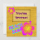 Custom Beach Bum party invitations with a pink hibiscus flower on a faux bamboo frame on a reed mat. Click Customize It to change fonts, colors, even save your design for later.