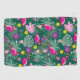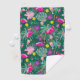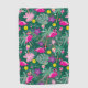 Super funny tropical pickleball party with pink flamingos, drinks and tropical foliage.