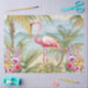 Pretty Tropical Pastel Ocean View with vibrant tropical flowers and a Pink Flamingo Decoupage Tissue Paper Sheets.