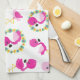 Tropical Pattern, Flamingos, Flowers, Your Name Kitchen Towel