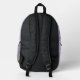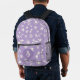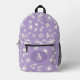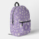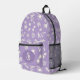 Purple backpack with tropical images pattern. Personalize with her first name initial on the zipper pocket. The monotone, off-white pattern, which covers the bag, is made up of palm trees, sea stars, seashells, sunglasses, and more. The initial template is also off-white and is printed over a darker purple oval shape.
