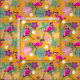 Fabric with tropical pickleball pattern and white pickleballs. Sunny yellow background.