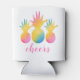 A fun tropical can cooler featuring colorful rainbow pineapples with "Cheers" in playful pink script. The bright, whimsical design brings instant party vibes to summer gatherings, tropical bachelorette weekends, or beach celebrations. A cheerful party favor that keeps drinks cold in style.
