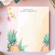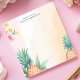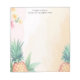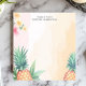 This personalized notepad features vibrant watercolor pineapples and tropical flowers set against a soft pastel background. The fresh, summery design is perfect for tropical decor lovers, beach enthusiasts, and anyone who enjoys stylish stationery. Customize the text at the top for a unique touch, making it ideal for journaling, note-taking, or gifting.