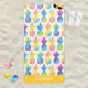 Bold and sunny, this tropical beach towel showcases an all-over watercolor pineapple pattern in rainbow hues on a crisp white background. A yellow banner at the bottom displays a personalized script monogram name. All text and colors are fully customizable to feature any name and your preferred banner color. A bright and joyful summer accessory for beach days and poolside fun.
