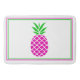 This cute bath mat features a fun tropical pineapple in classic preppy shades of bright pink and green with matching stripes around the edges.