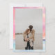 Tropical pink beach sunset calligraphy wedding invitation