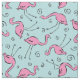 Tropical Pink Flamingo on Aqua Blue Pattern Fabric