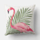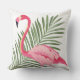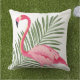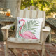 Tropical Pink Flamingo Palm Leaf Outdoor Pillow